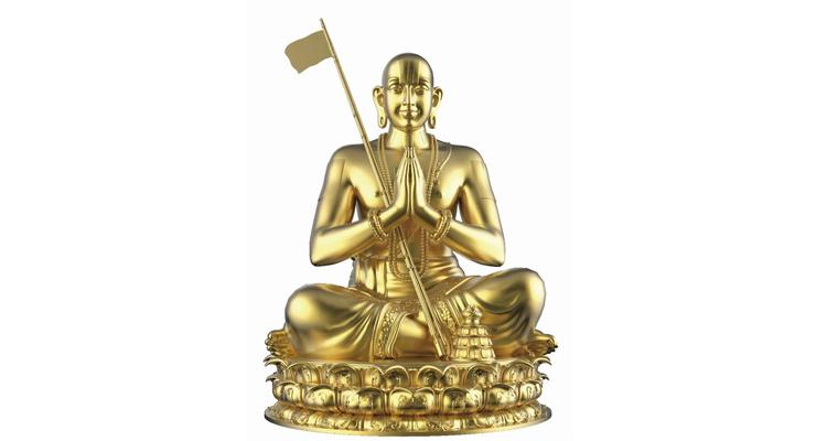 內(nèi)部實(shí)心銅鑄件,外部使用 1.5--2mm厚度 24K黃金包覆,共用黃金151公斤,手工制作。此金像將向朝拜者展示于寺廟宮殿二樓的中心位置。這座被稱為“平等雕塑”的雕像有216英尺高,銅制作,安裝在 海得拉巴的Shamshabad的Sri ramnagar的Jiva Ashramam旁邊的寺廟的中心位置,這座是為了紀(jì)念羅曼奴闍1000周年誕辰而建造的。
